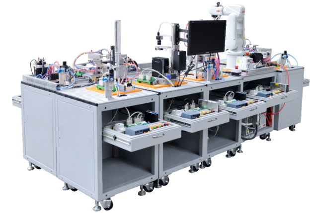 智能運(yùn)動控制實(shí)訓(xùn)教學(xué)考核裝備最大特點(diǎn)是它的綜合性和系統(tǒng)性,在這里,機(jī)械技術(shù)、氣動與液壓技術(shù)、圖像檢測與處理技術(shù)、工業(yè)機(jī)器人技術(shù)、電工電子技術(shù)、傳感測試技術(shù)、接口技術(shù)、信息變換技術(shù)、網(wǎng)絡(luò)通信技術(shù)等多種技術(shù)有機(jī)地結(jié)合,并綜合應(yīng)用到生產(chǎn)設(shè)備中。智能運(yùn)動控制還可以配備MES管理系統(tǒng),MES管理系統(tǒng)是智能制造的核心技術(shù)和關(guān)鍵環(huán)節(jié)之一。而系統(tǒng)性指的是,生產(chǎn)線的傳感檢測、傳輸與處理、控制、執(zhí)行與驅(qū)動等機(jī)構(gòu)在微處理單元的控制下協(xié)調(diào)有序地工作,有機(jī)地融合在一起。