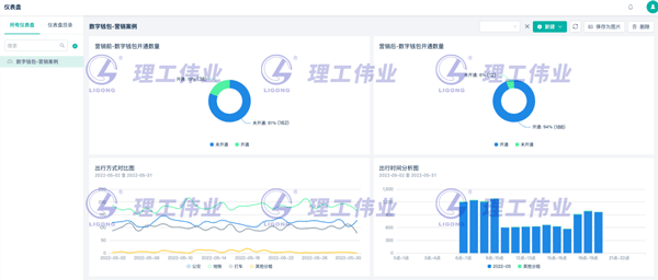 儀表盤模塊為用戶提供來一站式可視化分析功能,可以創(chuàng)建對應的分析圖例,幫助用戶洞察數(shù)據(jù)背后的奧秘。