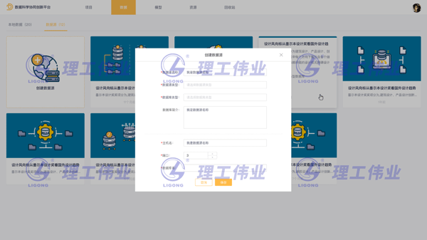 資源管理系統(tǒng)是對開發(fā)流程中數(shù)據(jù)和模型的統(tǒng)一管理,科研資源包括本地數(shù)據(jù)、數(shù)據(jù)源、平臺模型等,資源系統(tǒng)實現(xiàn)自動建模系統(tǒng)和可視化大屏模塊的打通,用戶可利用科研資源進行數(shù)據(jù)科學(xué)相關(guān)工作的開發(fā)。