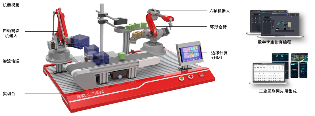 1、TYK-JQWL01型 機器人物流自動化工作站由桌面六軸機器人、桌面四軸機器人、傳送單元、弧形立體倉儲單元、Linux主控、視覺套件及工作站底座組成。工作站模擬機器人在物流行業(yè)中上下料、視覺識別、搬運碼垛、裝載入庫等倉儲流程,同時支持擴展工業(yè)互聯(lián)網(wǎng),數(shù)字孿生仿真搭建等教學。