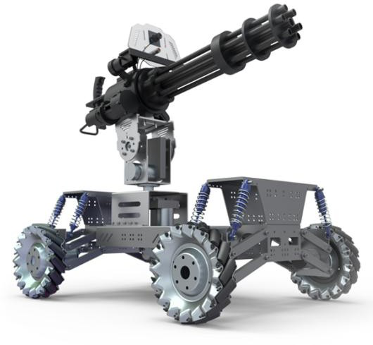 1.?AI偵查機(jī)器人底盤采用全鋁結(jié)構(gòu),內(nèi)置麥克納姆輪四驅(qū)系統(tǒng),可適應(yīng)多種戶外場(chǎng)景,同時(shí)還可與鋁合金結(jié)構(gòu)梁結(jié)合進(jìn)行各個(gè)部件的承載與擴(kuò)展。