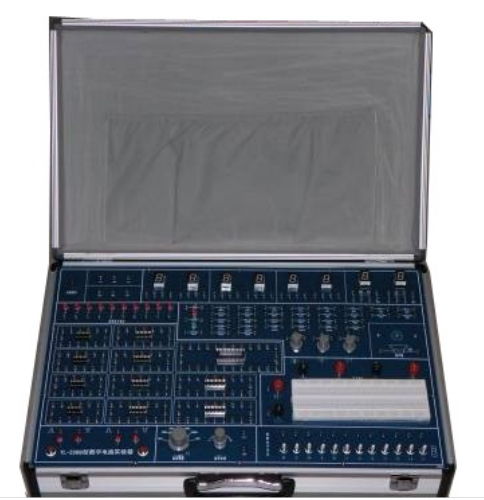 實驗箱采用天空藍(lán)的箱體,內(nèi)部采用一塊厚度為2mm的線路板,通過9個自攻螺絲固定在箱體上,確保線路板可靠的固定在箱體上。線路板通過目前流行的開關(guān)電源供電,帶載能力強,并帶有強電隔離和保護電路。所有的可觀察和可調(diào)試的元器件均分布在線路板的正面,其它的均分布在背面,有利于面板的整潔和方便學(xué)生實驗。
