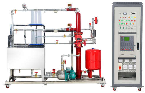 TYK-LXN02A型 自動(dòng)噴水滅火消防聯(lián)動(dòng)控制系統(tǒng)由噴水滅火對(duì)象和控制柜組成,其中噴水滅火對(duì)象的器件全部為工程器件,可展示建筑中濕式噴水滅火系統(tǒng)的典型結(jié)構(gòu),由不銹鋼框架、水箱、濕式報(bào)警閥、信號(hào)蝶閥、水力警鈴、水延遲器、各類常見(jiàn)噴淋頭、主、備增壓泵、恒壓泵、壓力開(kāi)關(guān)、樓層水流指示器、各功能用途壓力表、末端試水、有機(jī)玻璃水箱等組成??刂乒裰饕捎嶍懫?、輸入輸出模塊等組成。