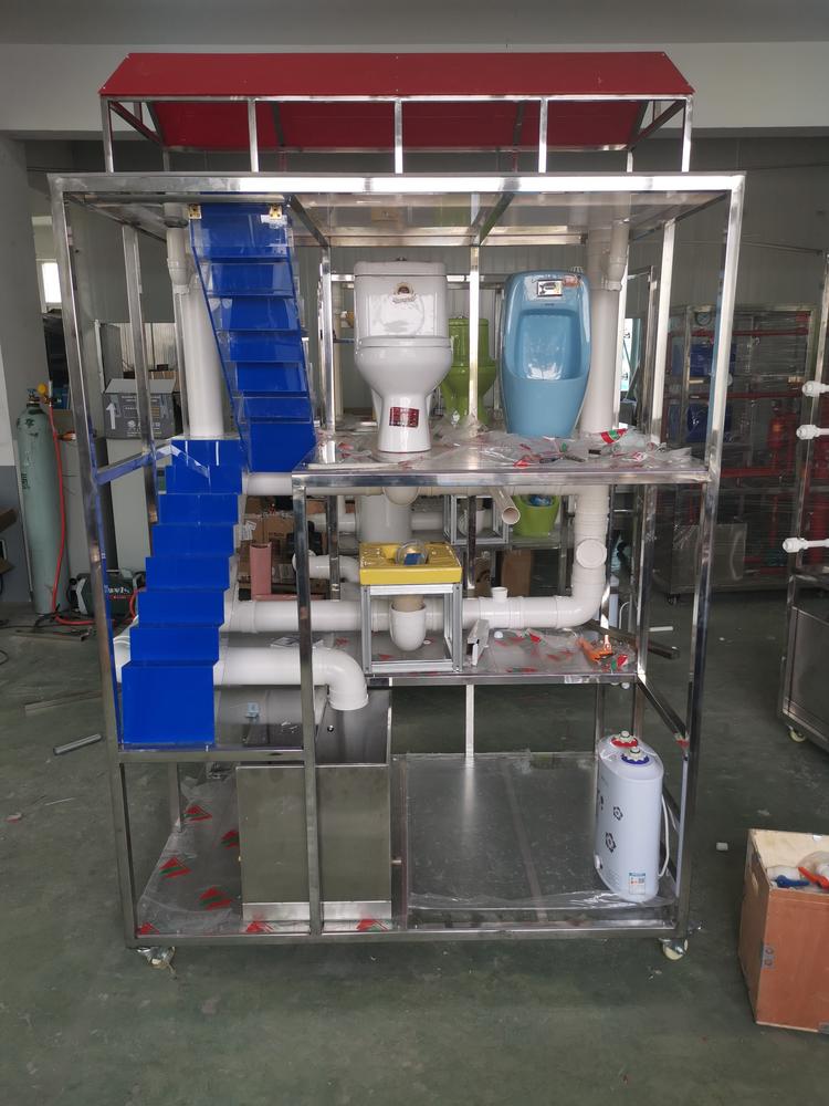 2、生活給排水演示及實訓(xùn)系統(tǒng)由鍋爐及循環(huán)泵實現(xiàn)熱循環(huán)演示。有機玻璃洗澡間包括:、浴缸1套、洗臉盤1套、大便器1套、配水箱1只、水泵1臺、樓梯、連接管道和球閥、不銹鋼支架等組成。