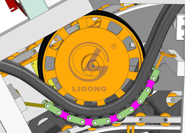 由扶手齒輪、扶手摩擦輪、張緊輪、托輥輪、壓輥輪、托帶鏈、回轉(zhuǎn)鏈行扶手導(dǎo)軌組成扶手帶動(dòng)力系統(tǒng)。