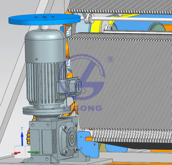由交流電機(jī)、專用減速器、制動(dòng)器、手動(dòng)盤車和傳動(dòng)齒輪等組成。
