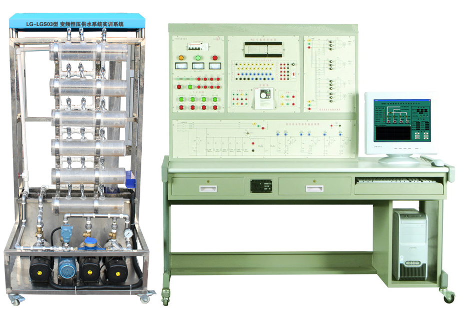 “TYK-LGS03型 變頻恒壓供水系統(tǒng)實訓(xùn)裝置”集PLC、變頻調(diào)速、過程控制、工程組態(tài)技術(shù)于一體。它由六層住宅消防、生活供水系統(tǒng)(實物模型),控制平臺兩大部分組成,包含了可編程控制器、變頻器、變頻磁力驅(qū)動泵、休眠泵、消防泵、壓力變送器、壓力儀表、輸水管道、消防栓、家用水龍頭、蓄水池等工程設(shè)備??刂破脚_采用PLC+變頻器的開放式控制結(jié)構(gòu),可以完成多種模式下的樓層恒壓供水實訓(xùn)實訓(xùn),為教學(xué)研究變頻恒壓供水技術(shù)提供一個開放的操作平臺。它是一款適合于大學(xué)及中、高職院校電氣自動化、樓宇自動化、建筑電氣、智能建筑等專業(yè)的綜合型實訓(xùn)設(shè)備。