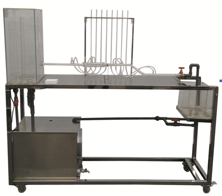 蓄水箱、水泵、有機玻璃實驗水箱、有機玻璃計量水箱、刻度標(biāo)尺、秒表、玻璃溫度計、測壓管、閥門、不銹鋼框架。