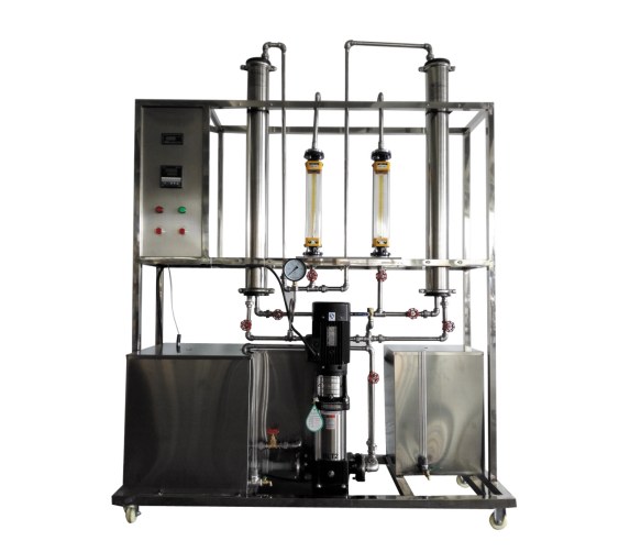 一、反滲透膜分離實驗裝置功能 1.加深對組成反滲透工藝流程各個處理單元構(gòu)造的了解。?? 2.掌握反滲透工藝流程各單元操作方法及沖洗方法。 3.熟悉各單元的作用,了解其水質(zhì)變化及設(shè)計參數(shù)。 二、反滲透膜分離實驗裝置主要配置 活性炭過濾器、保安過濾器、反滲透卷式膜組件、反滲透不銹鋼外殼、不銹鋼高壓泵 、流量計、純水電導率儀 、原水箱、純水箱、閥門、壓力表、電器控制系統(tǒng)、不銹鋼框架。 三、公用設(shè)施 1.水:裝置自帶水箱,連接自來水。實驗時由水箱循環(huán)泵送入系統(tǒng),循環(huán)使用。 2.電:電壓AC380V,功率1KW,標準三相四線制。每個實驗室需配置1~2個接地點(安全地及信號地)。 3.實驗物料:自來水或聚乙二醇,外配設(shè)備:分光光度計 四、技術(shù)參數(shù) 1.反滲透膜為卷式膜,膜直徑:φ100mm;長度:1014mm;脫鹽率:95%;帶有不銹鋼膜殼,*大壓力:4.16MPa。 2.預過濾器:10英寸活性炭預過濾和5μm精過濾。 3.保安過濾器:線繞式芯+不銹鋼外殼,出水量16-160L/h。 4.不銹鋼多級立式高壓離心泵,功率:0.75KW,流量:2m3/h,揚程80m。 5.液體流量計:規(guī)格10...