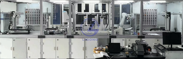 機器人上下料單元有工件暫存庫位、工業(yè)機器人、夾爪機構(gòu)組成,可以將工件放置在檢測工位上,檢測完成后剔除或輸送至清洗單元。
