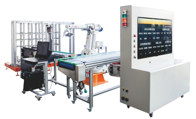 LGY-ZN021A型工業(yè)機器人智能傳輸分揀控制實訓系統(tǒng)由工業(yè)機器人作為主體控制對象,能滿足模擬生產過程中的上料、AGV傳輸、圖像識別、分揀、入垛等環(huán)節(jié),裝置中包括工業(yè)機器人、PLC控制系統(tǒng)、AGV小車、皮帶傳輸環(huán)節(jié)、視覺檢測系統(tǒng)、RFID系統(tǒng)、分揀裝置、原材料立體倉儲等單元,同時設備加入電子看板系統(tǒng),用來顯示生產環(huán)節(jié)。