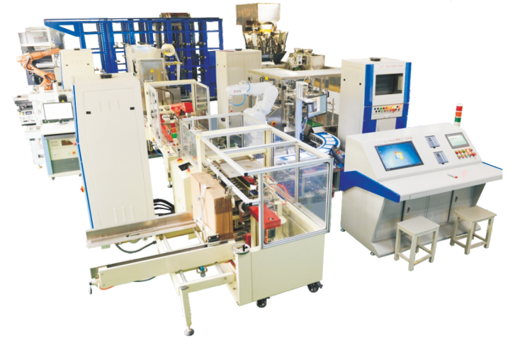 LGY-ZN012A型智能工廠實(shí)訓(xùn)室由控制系統(tǒng)(PLC)、制造執(zhí)行系統(tǒng)(MES)、資源管理系統(tǒng)(ERP) 三層結(jié)構(gòu)組成,主要由PLC控制、顆粒包裝、液體包裝、工業(yè)機(jī)器人裝配、紙箱成型機(jī)、封箱機(jī)、激光打碼、貼標(biāo)、掃碼器、工業(yè)機(jī)器人倉儲(chǔ)搬運(yùn)、巷道式倉儲(chǔ)、吹膜單元、印刷單元、制袋單元、行走工業(yè)機(jī)器人搬運(yùn)、AGV、RFID、掃碼定位、激光測(cè)距、氣動(dòng)元件等組成。