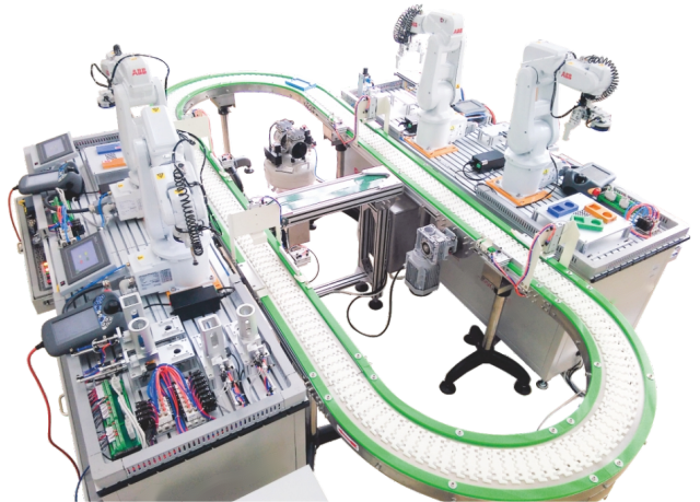 LGY-JQ09G工業(yè)機器人控制系統(tǒng)由四個工作站組成,分別為拆解站、供料站、裝配站、加蓋站。物料由輸送托盤、大工件(內(nèi)有一個圓形孔位和一個方形孔位,分為:綠色塑料大工件、藍色塑料大工件、金屬大工件)、小工件(分為:圓形塑料小工件、圓形塑料小工件、圓形金屬小工件、方形塑料小工件、方形塑料小工件、方形金屬小工件)、蓋子(分為:塑料蓋子、塑料蓋子、金屬蓋子)組成。
