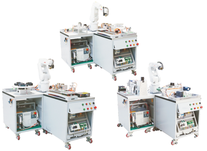 每套可同時(shí)滿足多名學(xué)員進(jìn)行操作和學(xué)習(xí)。實(shí)訓(xùn)設(shè)備功能側(cè)重于學(xué)生的實(shí)際操作編程訓(xùn)練,和仿真實(shí)訓(xùn)室配合使用,該設(shè)備是讓學(xué)生通過真實(shí)的工業(yè)典型應(yīng)用案例來掌握專業(yè)知識與技能,通過把復(fù)雜的過程簡單化、簡單的過程精細(xì)化把過去的驗(yàn)證性實(shí)訓(xùn)教學(xué)提升為學(xué)生的自主動(dòng)手學(xué)習(xí),對學(xué)生在學(xué)習(xí)過程中遇見的工業(yè)機(jī)器人調(diào)試方面問題不拘泥于一種解決方法,突出學(xué)生解決問題方面能力的擴(kuò)展,特別強(qiáng)調(diào)學(xué)生的“學(xué)”和實(shí)際解決問題、動(dòng)手能力的訓(xùn)練,該實(shí)訓(xùn)室是把企業(yè)崗位要求的核心技能提煉出來進(jìn)行反復(fù)訓(xùn)練。