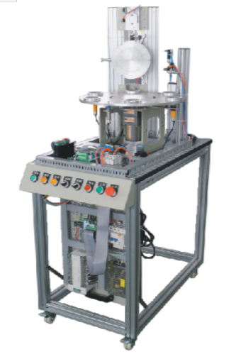 由旋轉(zhuǎn)工作臺、平面推力軸承、直流減速電機(10W/24V ?5r/m)、刀具庫(3種刀具)、升降式加工系統(tǒng)、加工組件、檢測組件、光電傳感器、轉(zhuǎn)臺到位傳感器、步進電機、步進電機驅(qū)動器、電氣掛板等組成。主要完成物料加工和深度的檢測。工件在旋轉(zhuǎn)平臺上被檢測及加工。旋轉(zhuǎn)平臺由直流電機驅(qū)動。平臺的定位由繼電器回路完成,通過電感式傳感器檢測平臺的位置。工件在平臺并行完成檢測及鉆孔的加工。在進行鉆孔加工時,夾緊執(zhí)行件夾緊工件。加工完的工件,通過電氣分支送到下一個工作站。