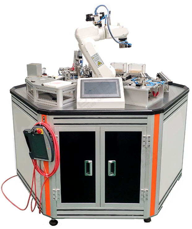 LGJ-LM03型 工業(yè)機器人組合裝配實訓裝置(中性筆裝配線) 以ABB IRB 120-5/0.9負載5Kg的六自由度工業(yè)機器人(或者埃夫特ER3負載3Kg)為實訓對象,配置多種應用模塊,以完成中性筆自動裝配為切入點體現(xiàn)機器人的各種典型應用,在人才培養(yǎng)上能完成機器人技術的基礎性培訓教學,完成機器人初級及中級實訓目標。