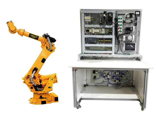 ? ? 本工業(yè)機(jī)器人故障診斷實(shí)訓(xùn)系統(tǒng)以工業(yè)機(jī)器人與機(jī)器人控制系統(tǒng)為核心,將機(jī)器人伺服驅(qū)動(dòng)技術(shù)、運(yùn)動(dòng)控制、PLC技術(shù)、觸摸屏技術(shù)有機(jī)地進(jìn)行整合,結(jié)構(gòu)模塊化,可以對(duì)發(fā)生的系統(tǒng)故障進(jìn)行檢測(cè)和維修,以及機(jī)器人控制系統(tǒng)常見故障的設(shè)計(jì)與故障排除,可以進(jìn)行六軸機(jī)器人示教、定位、抓取、裝配等訓(xùn)練。?