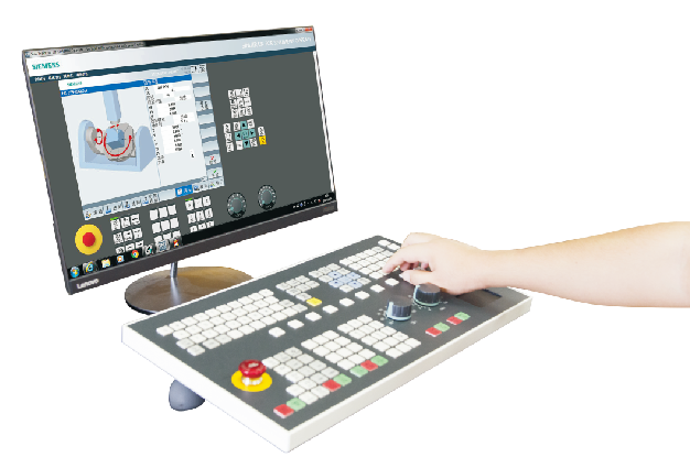 TYK-SKG16型西門(mén)子標(biāo)準(zhǔn)五軸數(shù)控面板中的鍵位布局與實(shí)際使用中的機(jī)床面板相一致,使用者更容易上手。初學(xué)者學(xué)習(xí)高端數(shù)控機(jī)床操作,可以先通過(guò)該單元進(jìn)行學(xué)習(xí),然后上機(jī)操作,大大降低了初學(xué)者上機(jī)時(shí)的誤操作所造成的碰撞事故,降低機(jī)床的碰撞風(fēng)險(xiǎn)。